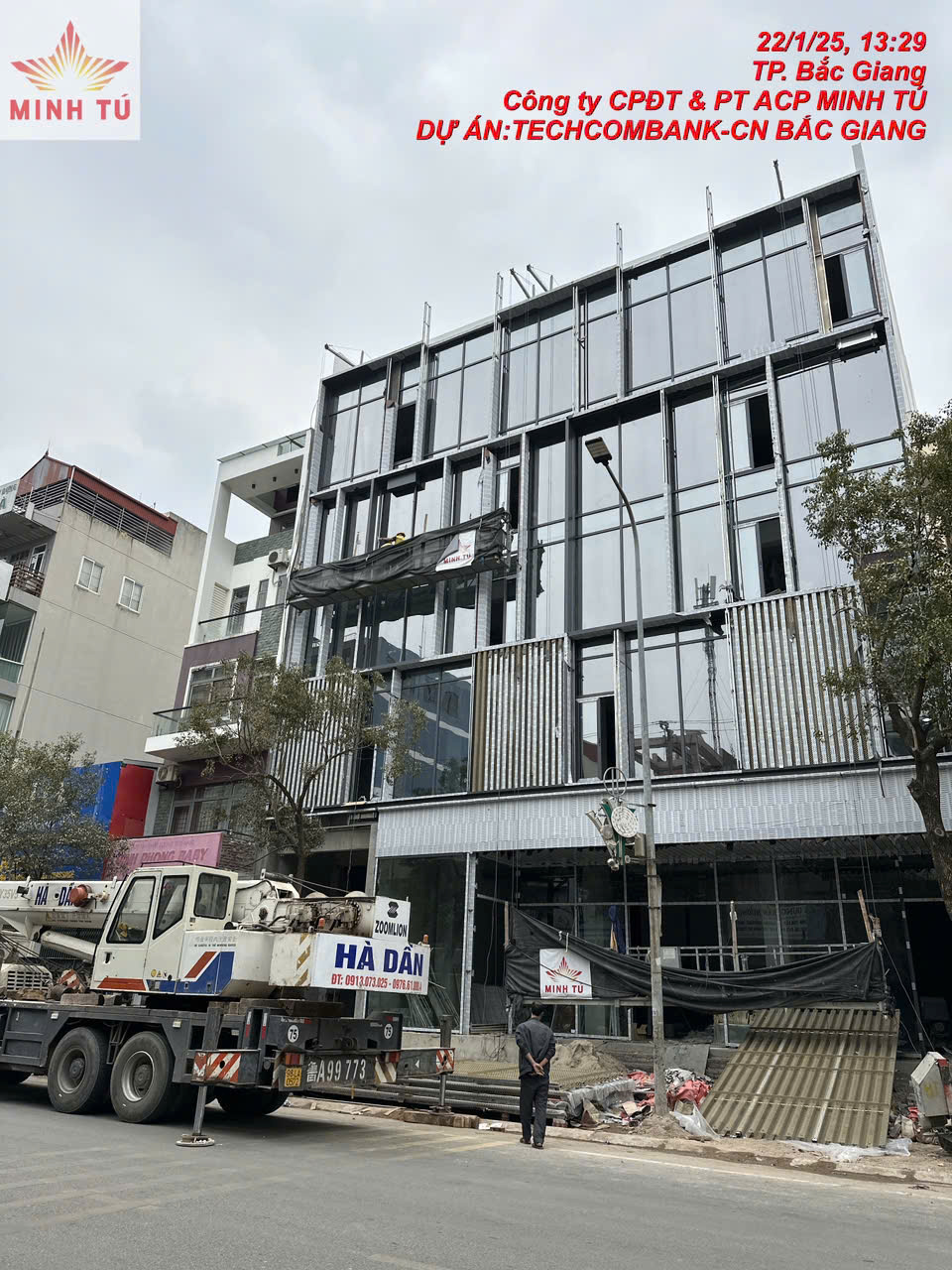 Thi công mặt dựng tại Trụ sở Techcombank Bắc Giang